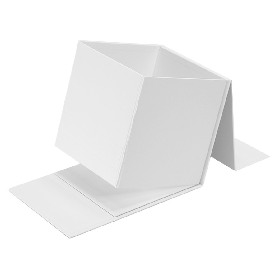 Виготовлена з міцного картону щільністю 1200 г/м², покритого крейдованим папером (157 г/м² C2S) з матовою ламінацією та тисненням. Має складану конструкцію (Collapsible Cube Box), що дозволяє зручно транспортувати та економити місце на складі.