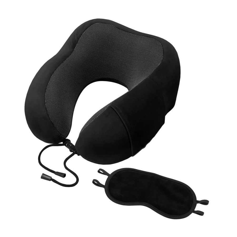 Об’ємна подушка під шию з маскою для сну в з'ємному чохлі, наповнювач із вспіненого поліуретану з ефектом пам'яті для максимального комфорту в подорожі, регульована застібка. Матеріал: Частина 1 - 90% поліестер, 10% спандекс. Частина 2 - 100% поліпропілен.