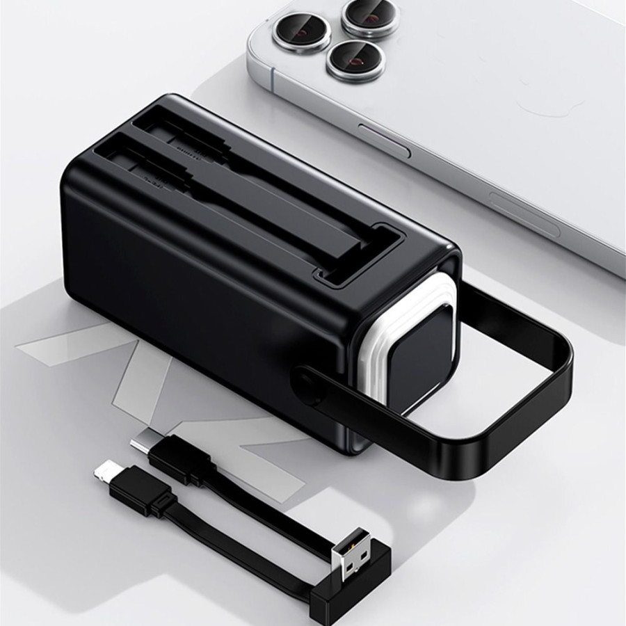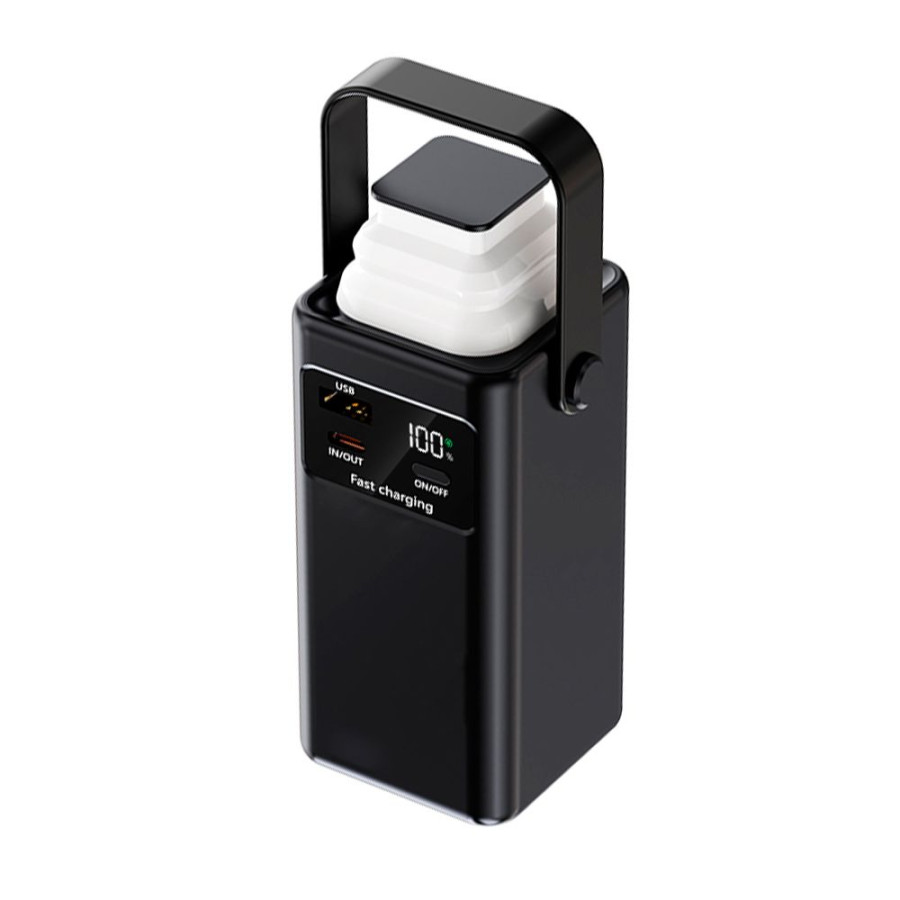 Переваги: кемпінгова лампа, швидке заряджання, знімні кабелі, компактний розмір, зручна ручка.