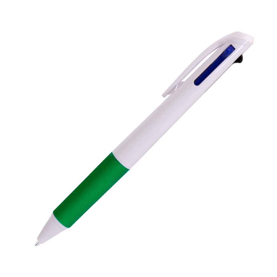 Ручка кулькова багатофункціональна 3 в1 Troya з білим корпусом, м'якою силіконовою резинкою для зручного тримання в руці.Три функції в одній ручці: чорне, синє та червоне чорнило.
