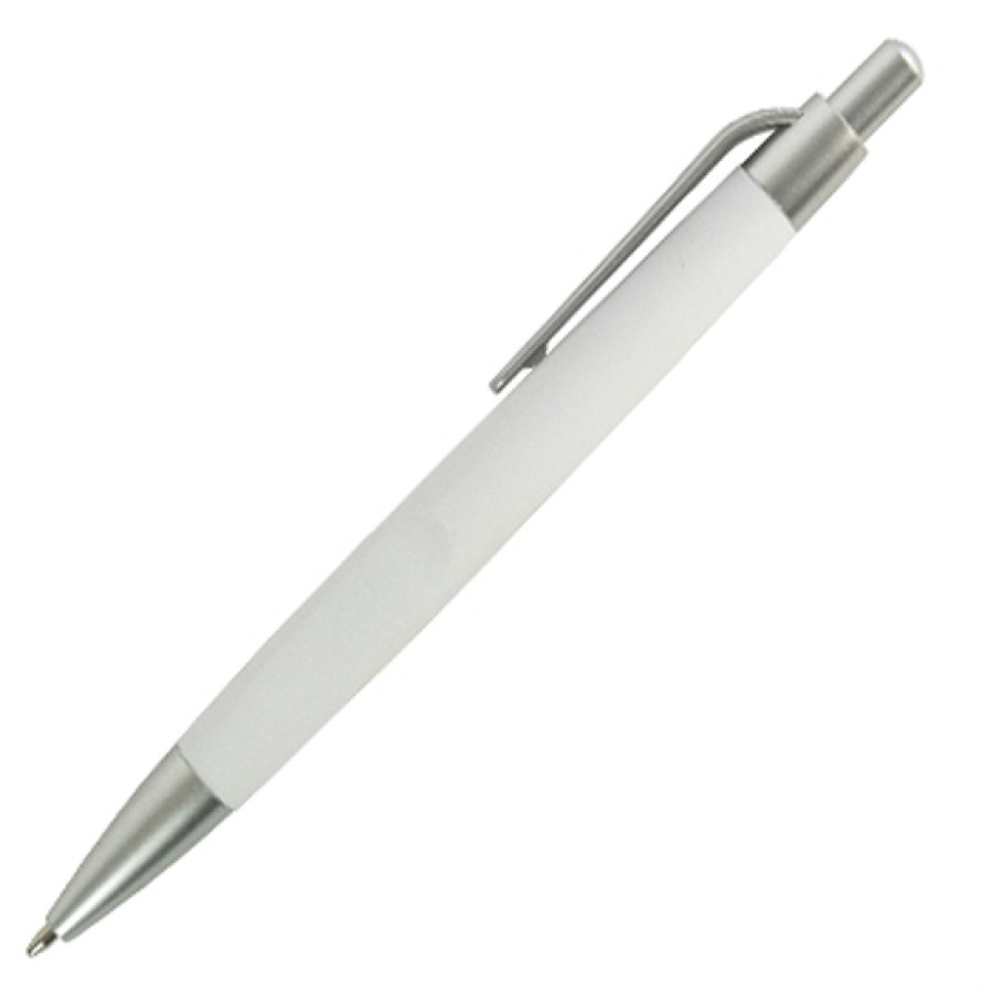 Ручка кулькова GRETA пластикова софт-тач покриттям та сірими елементами (білий)