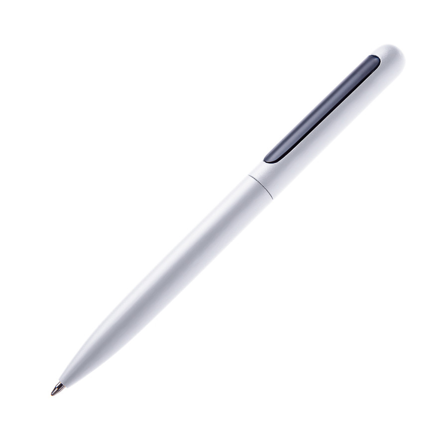 Ручка кулькова матова, металева. При включеній ручці кліп втягуеться спеціальним механізмом в корпус, щоб не можливо зачепити на кишеню, при виключеній ручці кліп виходить с корпусу. Ця система захистить ваші кишені від плям пасти зі стержня ручки. Стержень з синім чорнилом