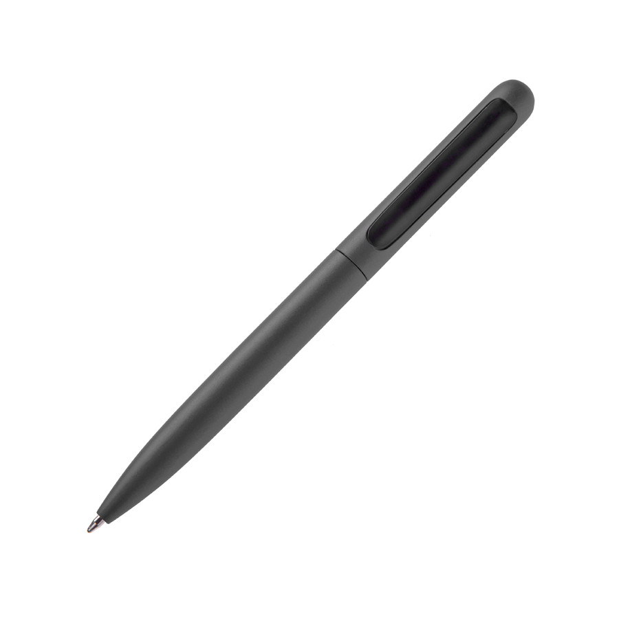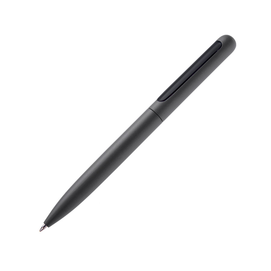 Ручка кулькова матова, металева. При включеній ручці кліп втягуеться спеціальним механізмом в корпус, щоб не можливо зачепити на кишеню, при виключеній ручці кліп виходить с корпусу. Ця система захистить ваші кишені від плям пасти зі стержня ручки. Стержень з синім чорнилом