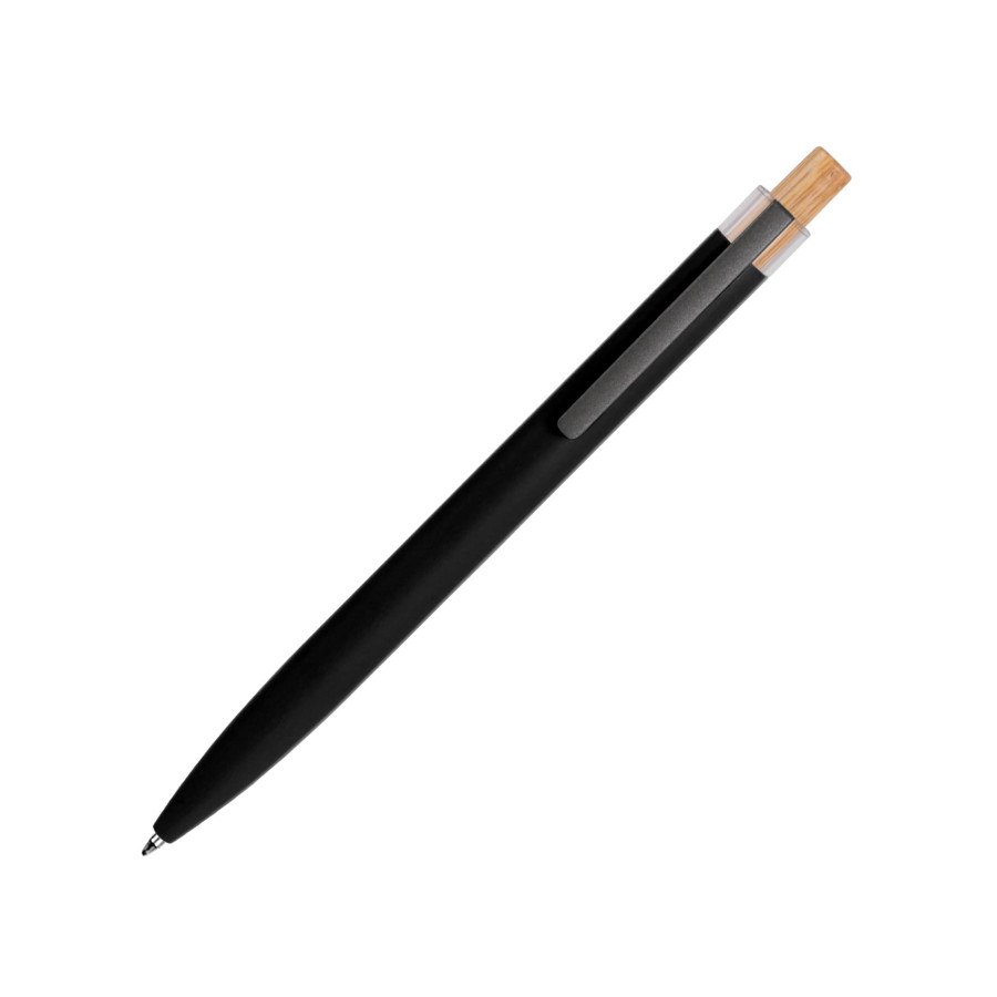 Ручка кулькова, покриття матове, бамбукова вставка, кліп з пластику. Стержень з синім чорнилом