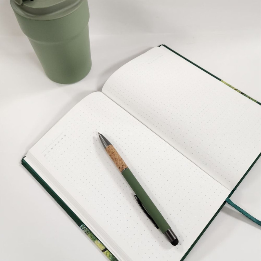Металева кулькова ручка Amazon – це сучасне сенсорне канцелярське приладдя високої якості з корковою нижньою частиною. Ручка з корком не висковзує з пальців, нею зручно писати.
