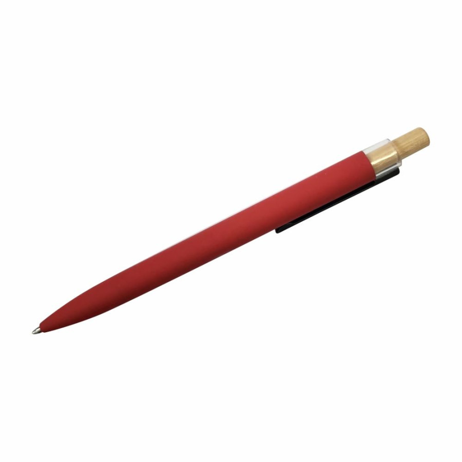 Корпус ручки виготовлений з алюмінію, зверху нанесене кольорове покриття Soft touch. Виріб має бамбукову кнопку.