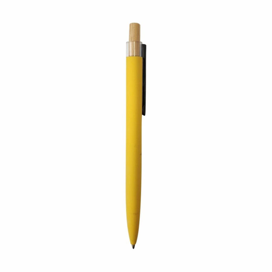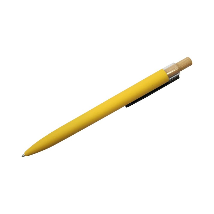 Корпус ручки виготовлений з алюмінію, зверху нанесене кольорове покриття Soft touch. Виріб має бамбукову кнопку.