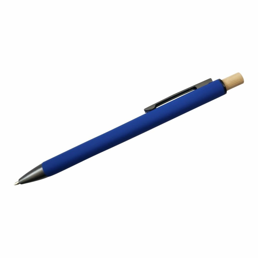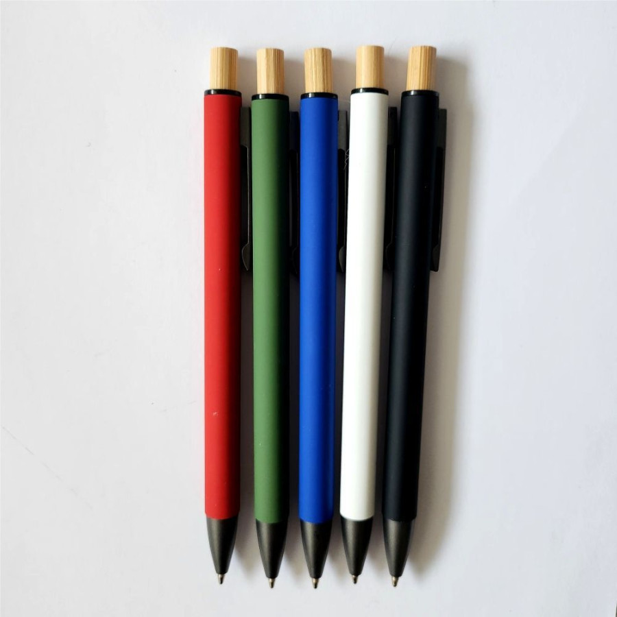 Корпус ручки виготовлений з алюмінію, зверху нанесене кольорове покриття Soft touch. Виріб має бамбукову кнопку.
