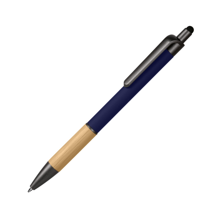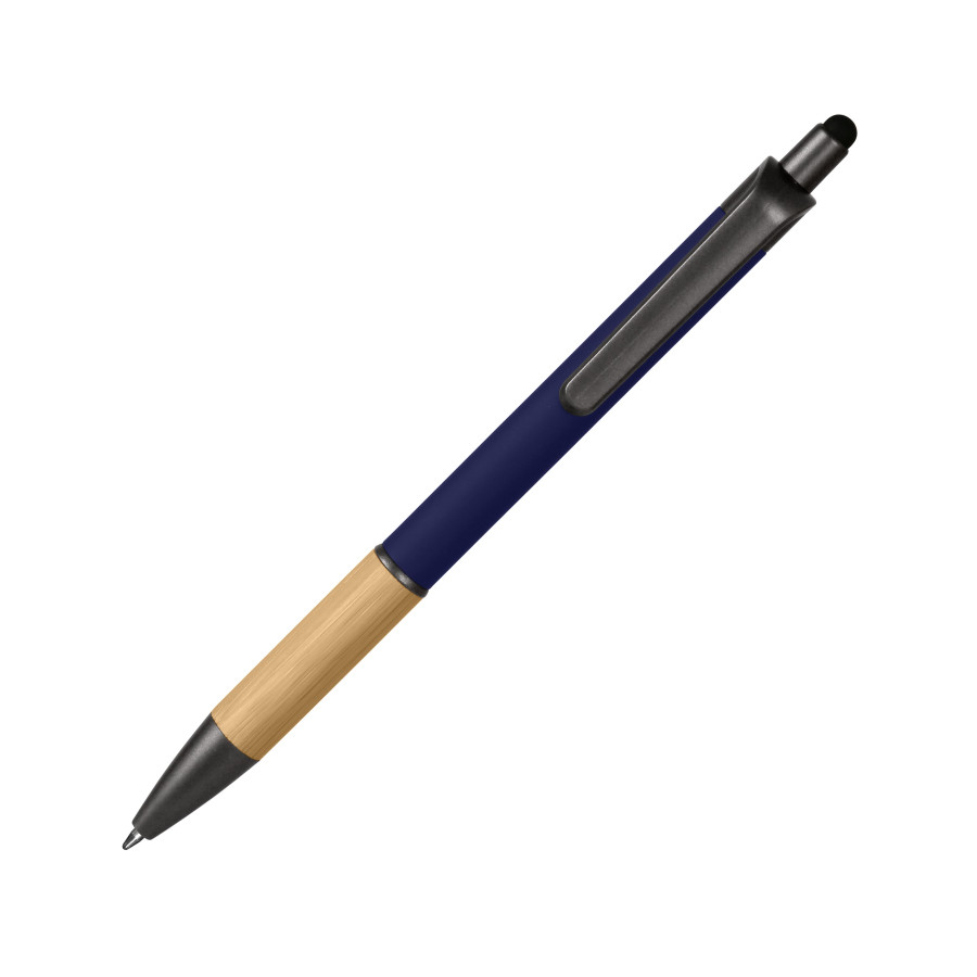Ручка-стилус кулькова, корпус металевий з покриттям софт-тач, бамбукова вставка, кліп з пластику. Стержень з синім чорнилом. Рекомендований метод нанесення - гравіювання, УФ-друк.