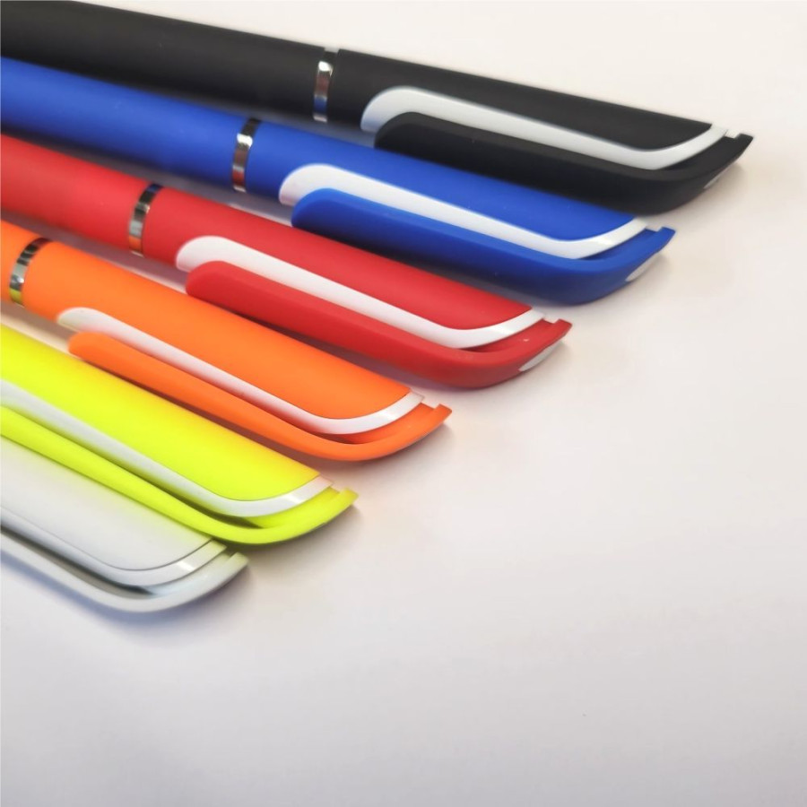 Корпус ручки виготовлений з пластику. Зверху корпус і затискач з покриттям Soft touch. Посередині – металеве хромоване кільце.