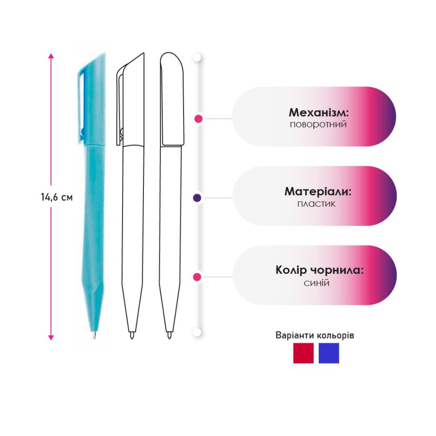 Як замовити Ручка пластикова кулькова Bergamo Tornado (синій) з логотипом від компанії Giftex: