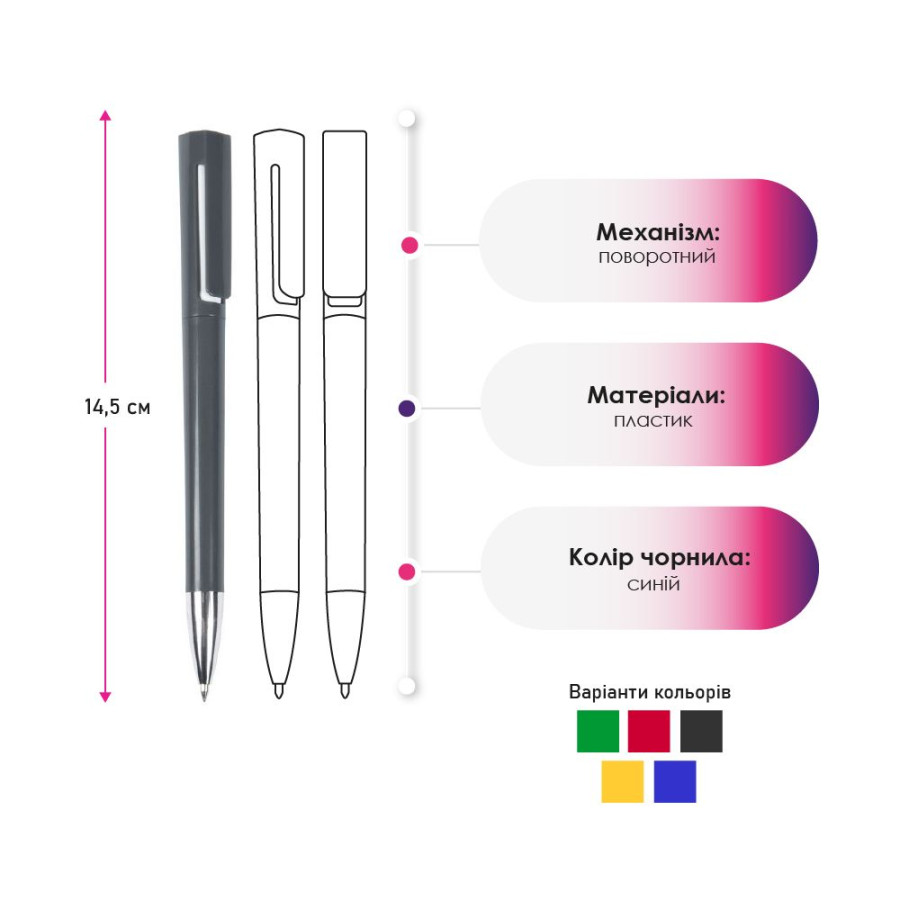 Кулькова авторучка, корпус з пластика, поворотний механізм.