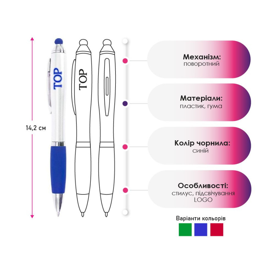 Як замовити Ручка-стилус пластикова кулькова Bergamo Lightlogo (синій) з логотипом від компанії Giftex:
