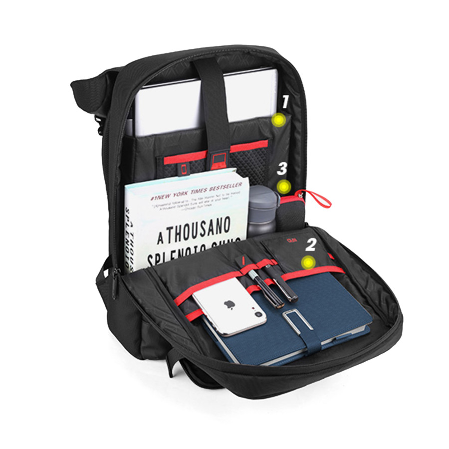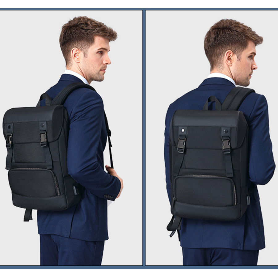 Рюкзак з відділенням для ноутбука 15,6” та відділенням для ipad .Тканина водонепроникний 100% поліестер + PU, має USB Port, великий відділ та різні кармани органайзери, кишеня Anti theft (RFID) ,прихована кишеня на лямці для карток, на задній спинці ремінь для валізи.