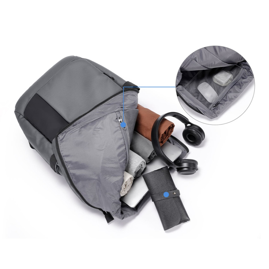 Рюкзак для ноутбуку 15,6” та планшету.Тканина високоякісний водонепроникний 100% поліестер, застібка блискавка та стильний замок, має основний великий відділ та різні кармани органайзери, відділ для ноутбуку та планшету, дві бокові кишені та дві попереду, ремінь для валізи. М’яка спинка та лямки. Розмір: 48 х 32 х 18 см.