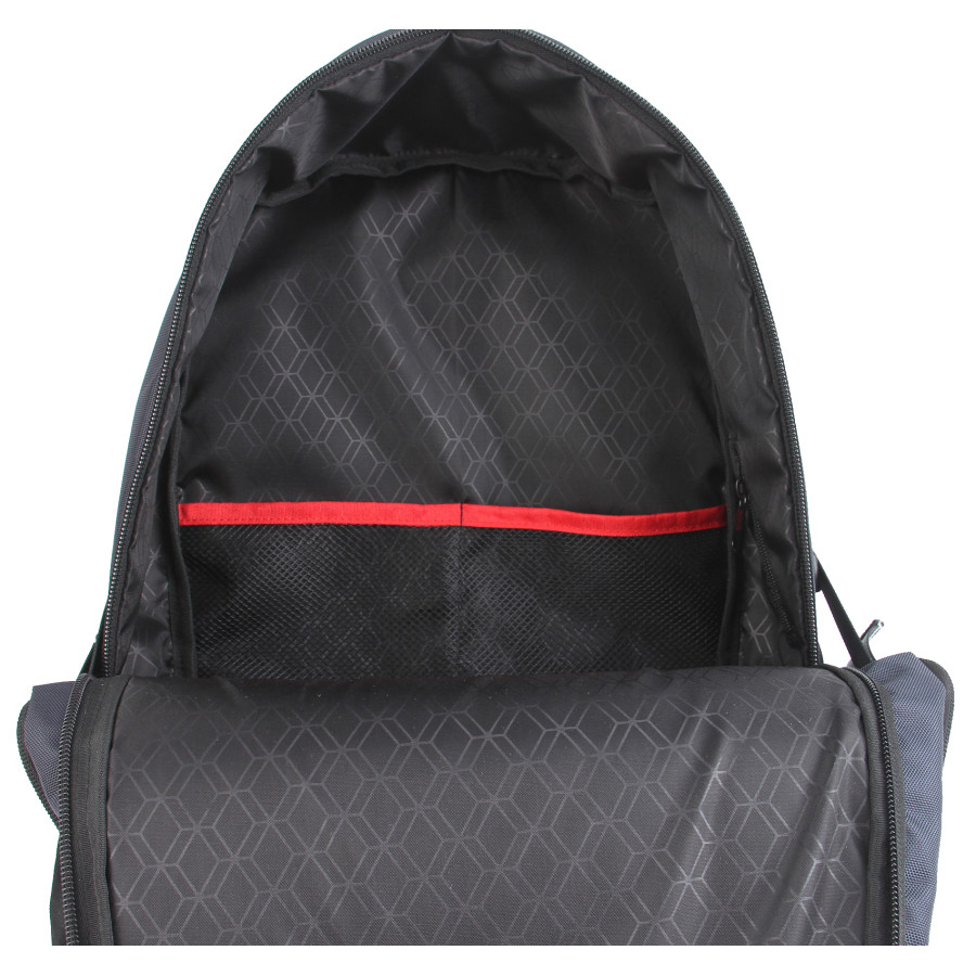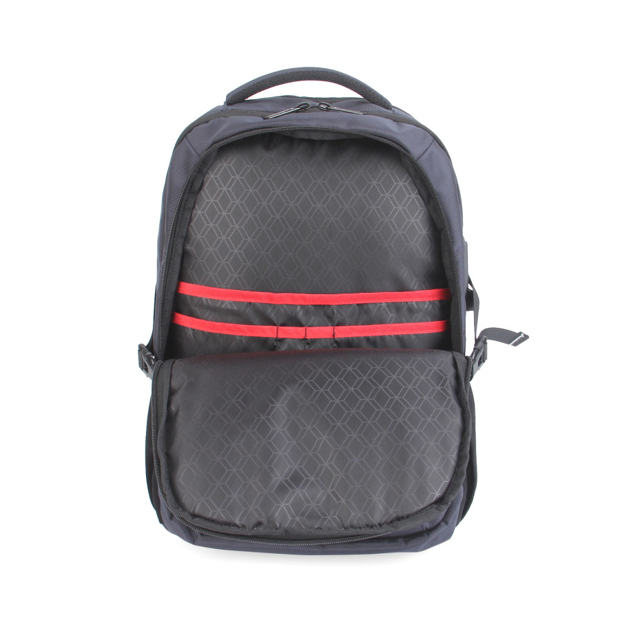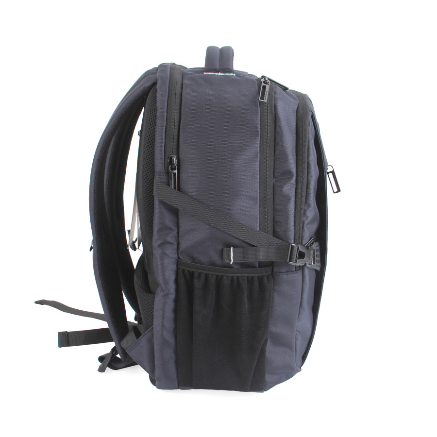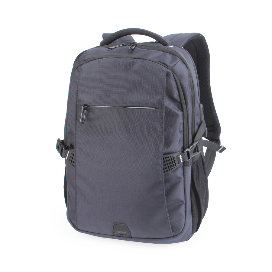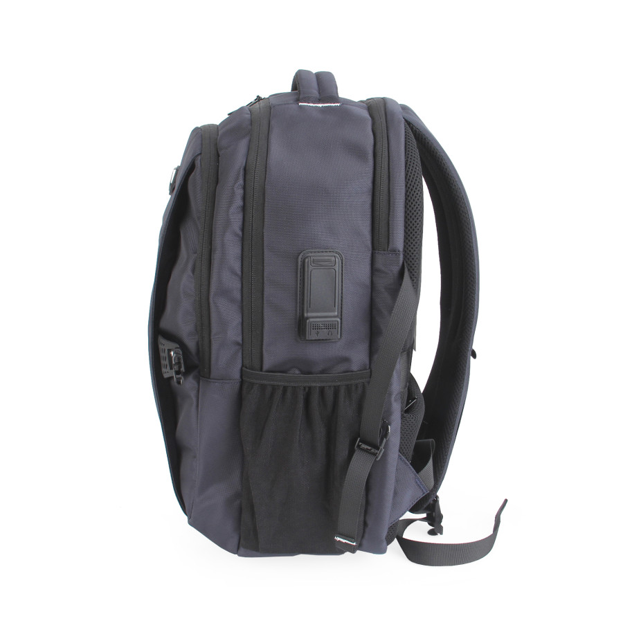 Рюкзак з окремим відділенням для ноутбука 15,6” .Тканина водонепроникний 100% поліестер, має USB + Audio Port, по бокам дві зручні кишені для пляшки з фіксуючим ремінцем або інших речей, багато великих вітділів та різні кармани органайзери, прихована кишеня на задній спинці та ремінь для валізи. Розмір 44Х31Х13. Нанесення шовкодрук, термоперенос