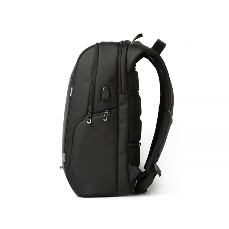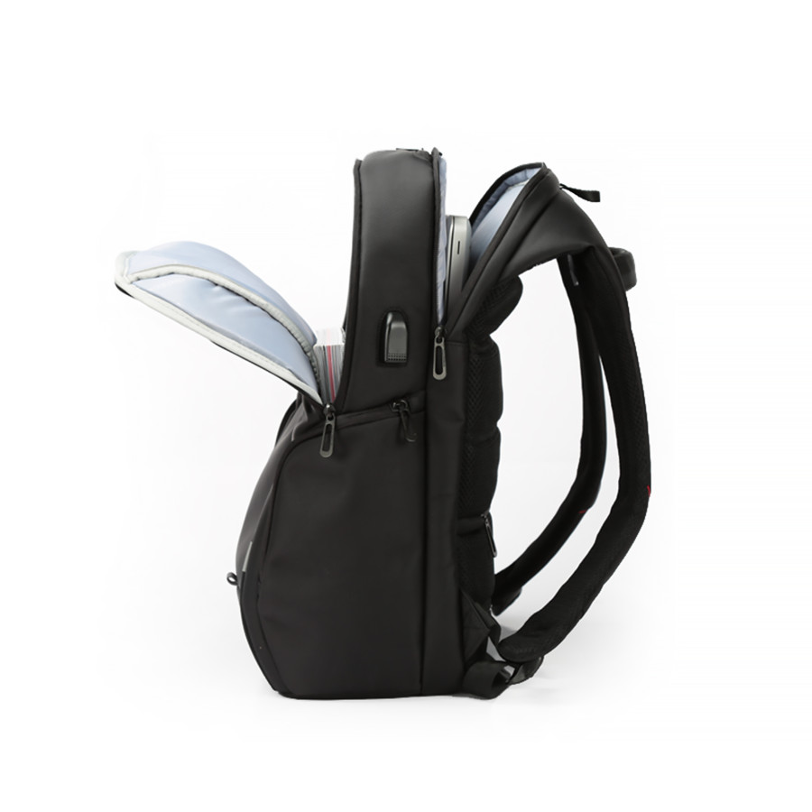 Рюкзак для ноутбука 15,6’’. Одне велике відділення, відділення для ноутбука, одна кишеня попереду. М’яка спинка та лямки з пасивною системою вентиляції. Ущільнена м’яка підкладка. Вбудований USB-порт для зарядки. Отвір для навушників. Світловідбиваючі елементи. Матеріал: Нейлон 600D + PU