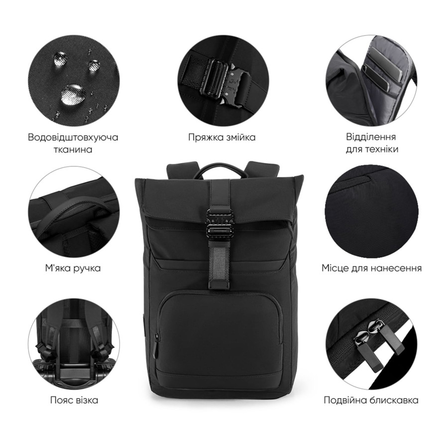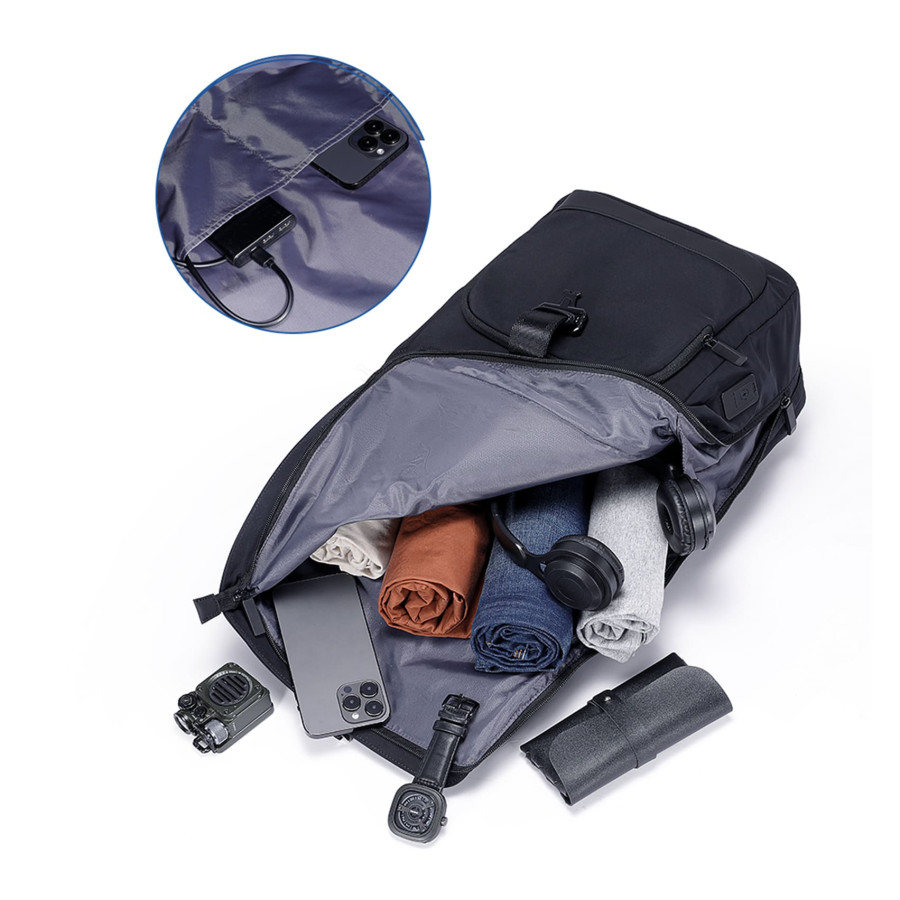 Рюкзак для ноутбука 15,6” та планшету.Тканина високоякісний водонепроникний 100% поліестер фібра, застібка блискавка та стильний металевий замок, має USB Port, основний великий вітділ та різні кармани органайзери, роздільний вітділ для ноутбука та планшету, одна бокова кишеня та дві попереду, ремінь для валізи. М’яка спинка та лямки. Обєм: 24 л. Розмір: 44 х 32 х 17 см.