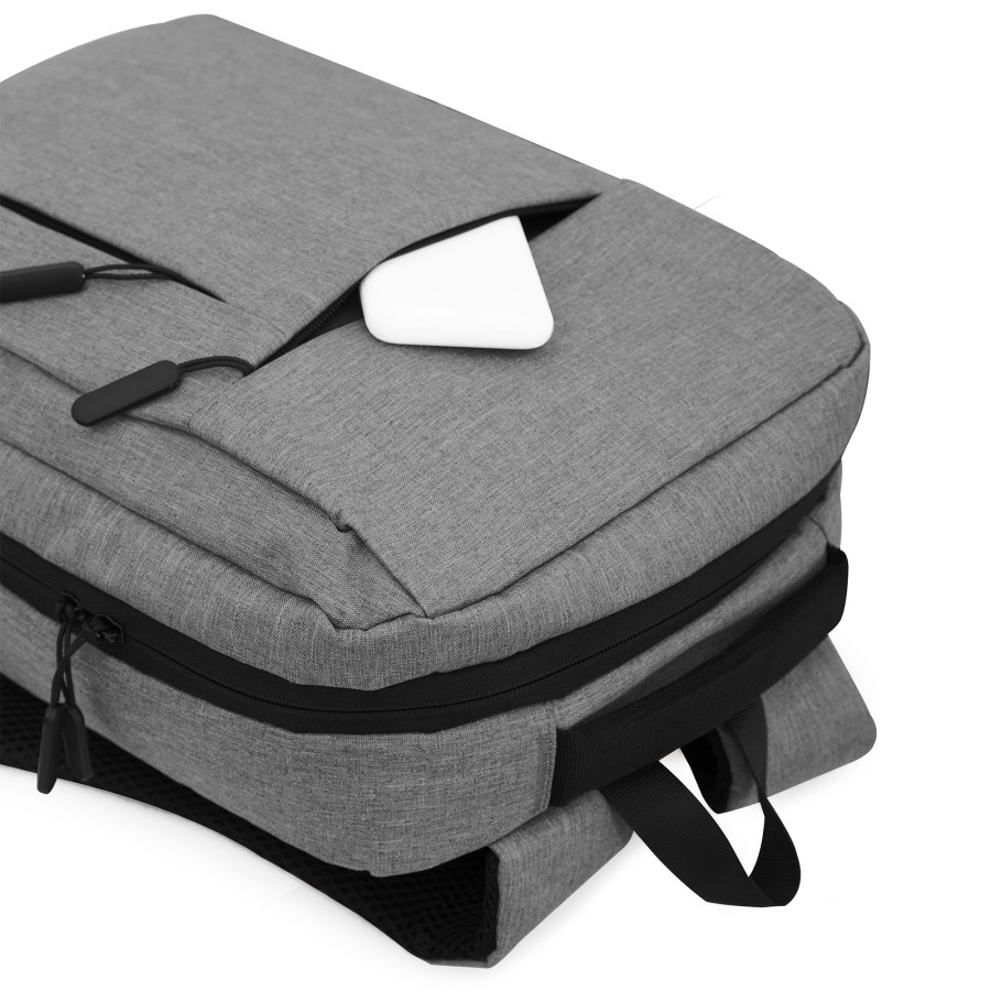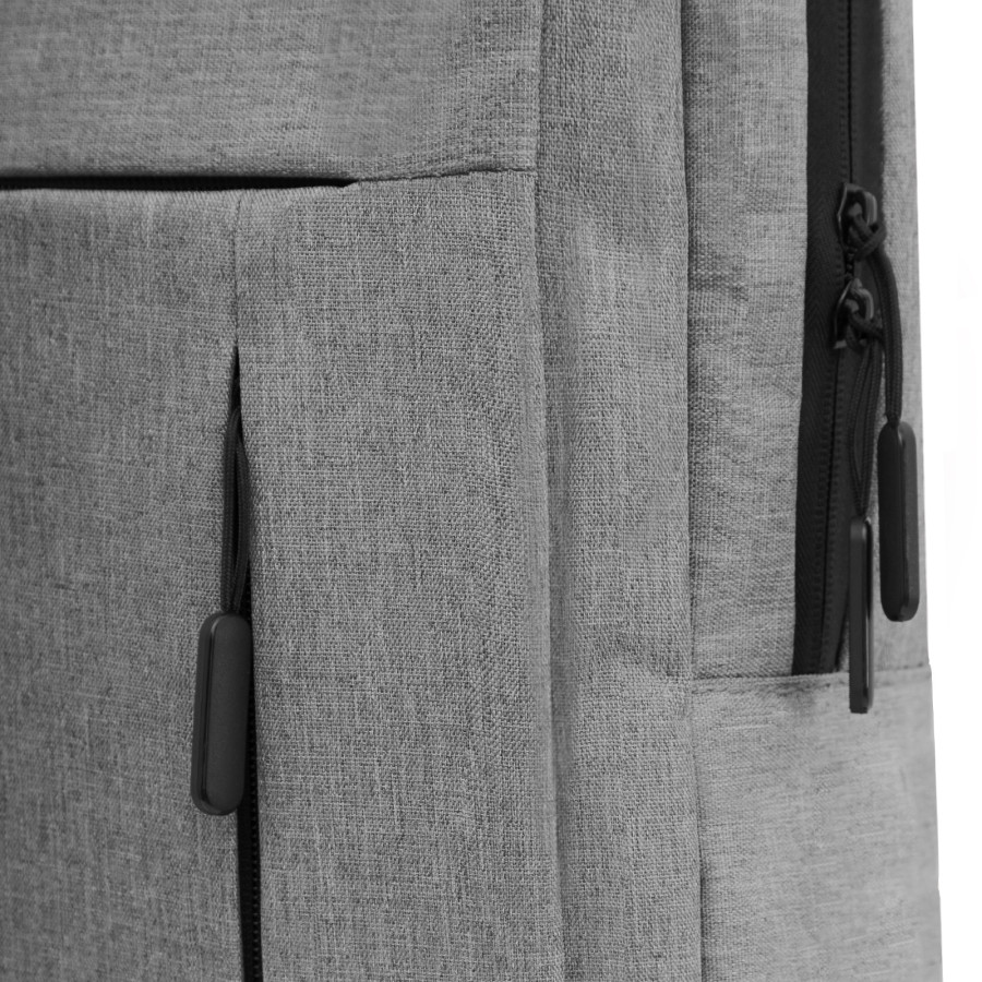Рюкзак для ноутбука 15,6 дюймів. Одне велике відділення з органайзерами, окреме відділення для ноутбука, попереду 2 кишені. М'яка спинка та лямки з пасивною системою вентиляції. Ущільнена м'яка підкладка. Матеріал: поліестер для імітацію джута.
