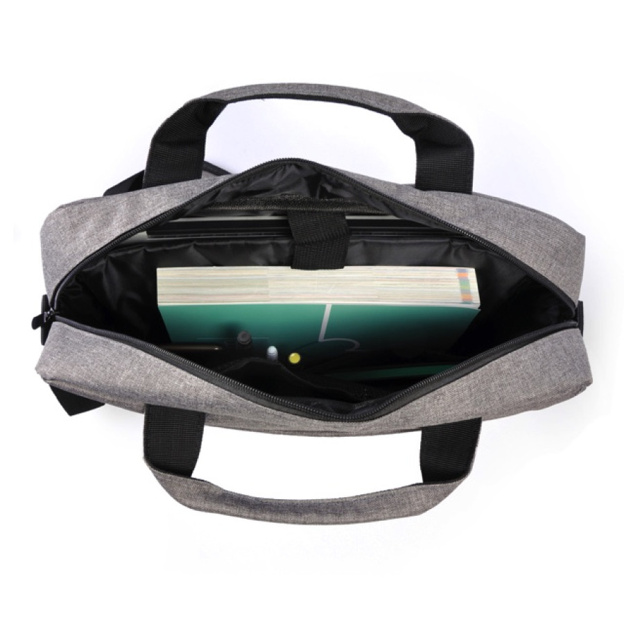 Сумка для ноутбука 15". Основне відділення, відділення для ноутбука з м'яким ущільнювачем, одна внутрішня кишеня на блискавці та дві зовнішні кишені на блискавці. Матеріал: поліестер під імітацію джута.