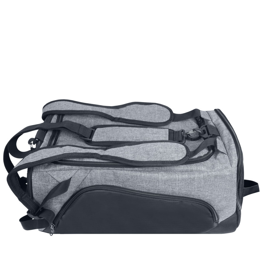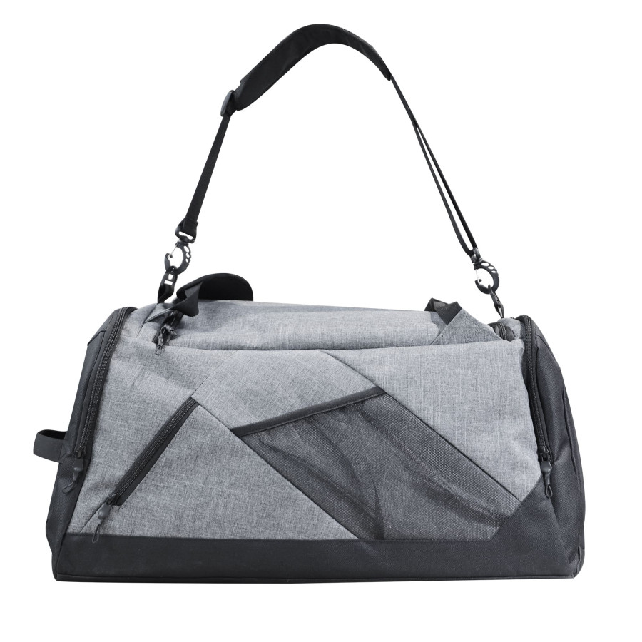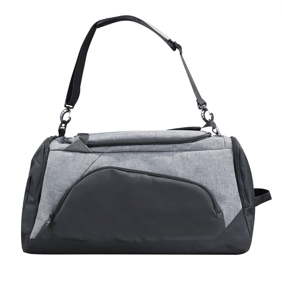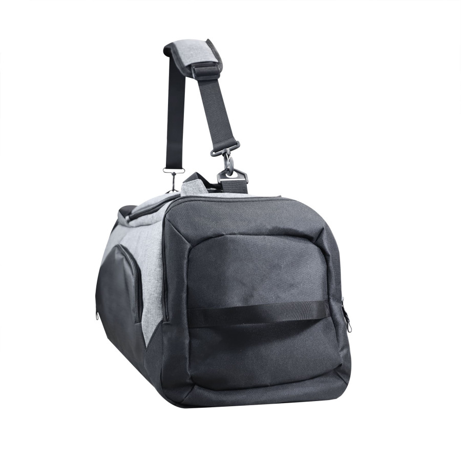 Багатофункціональна сумка з ущільнювачем з поролону. Має вмістке основне відділення, внутрішній м’який карман для ноутбука, дві бокові кишеня на блискавці (одна з яких для взуття), маленьку зовнішню кишеню на блискавці для окулярів, зовнішню кишеню-сітку для пляшки, основний регульований ремінь та дві регульовані наплічні шлейки. Підходить для спорту чи подорожей.