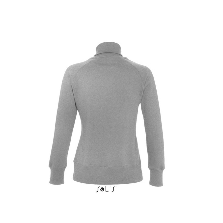 Світшот жіночий на блискавці SOL'S SODA. Одна з рідкісних моделей з мольтона без капюшона на блискавці зверху до низу. Воріт-стійка; рукава реглан, 2 бічних кишені, приталена модель. Мольтон з начосом 280. 50% бавовна "Ringspun", 50% поліестер. Воріт, манжети і низ виробу оброблені рібом з еластаном 2х2. Внутрішня сторона з мольтона з начосом.