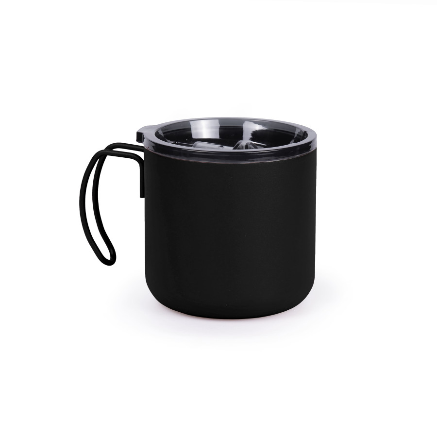 Термочашка з нержавіючої сталі з подвійними стійками, вкрита матовою кольоровою емаллю. Кришка прозора з клапаном. Кришку можна мити в посудомийній машині. Корпус мити тільки вручну, щоб не пошкодити кольорове покриття. Підтримує напій гарячим протягом 6 годин. Висота 8,1 см без кришки, з кришкою 8,6 см, діаметр 8,6 см