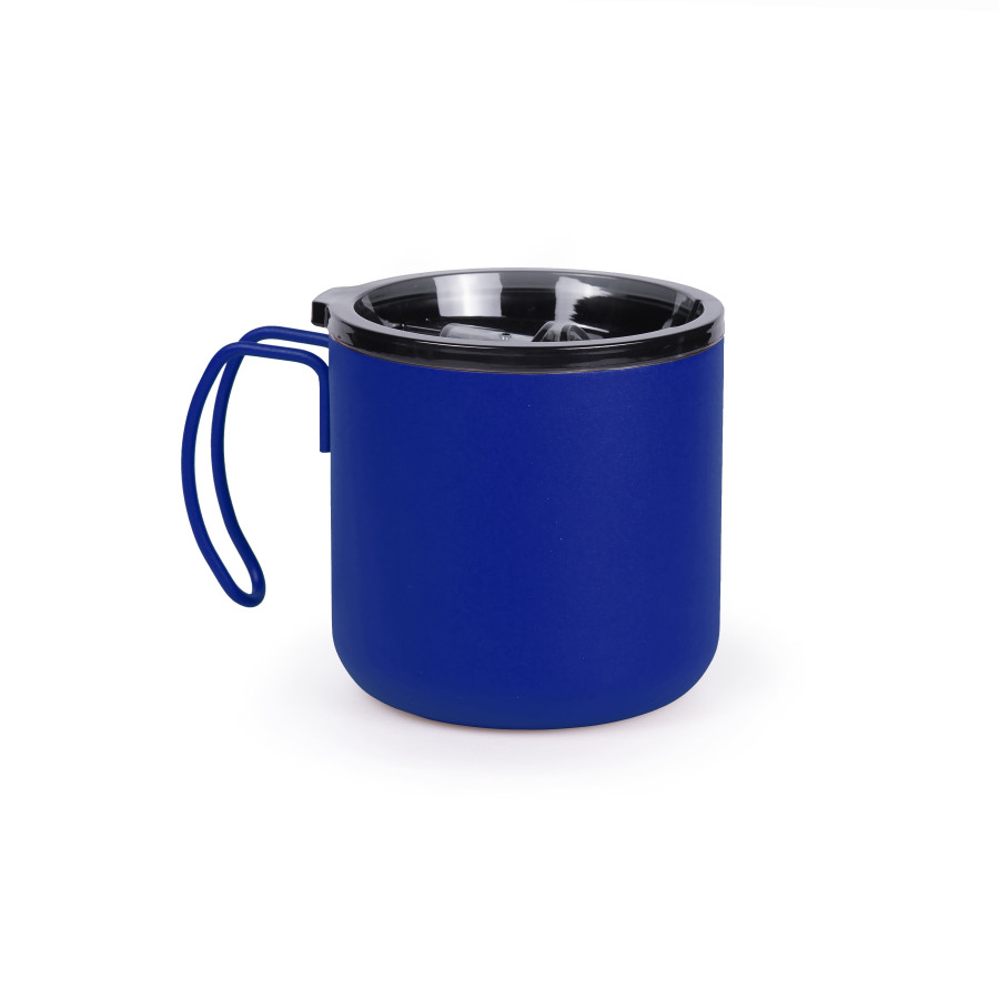 Термочашка з нержавіючої сталі з подвійними стійками, вкрита матовою кольоровою емаллю. Кришка прозора з клапаном. Кришку можна мити в посудомийній машині. Корпус мити тільки вручну, щоб не пошкодити кольорове покриття. Підтримує напій гарячим протягом 6 годин. Висота 8,1 см без кришки, з кришкою 8,6 см, діаметр 8,6 см