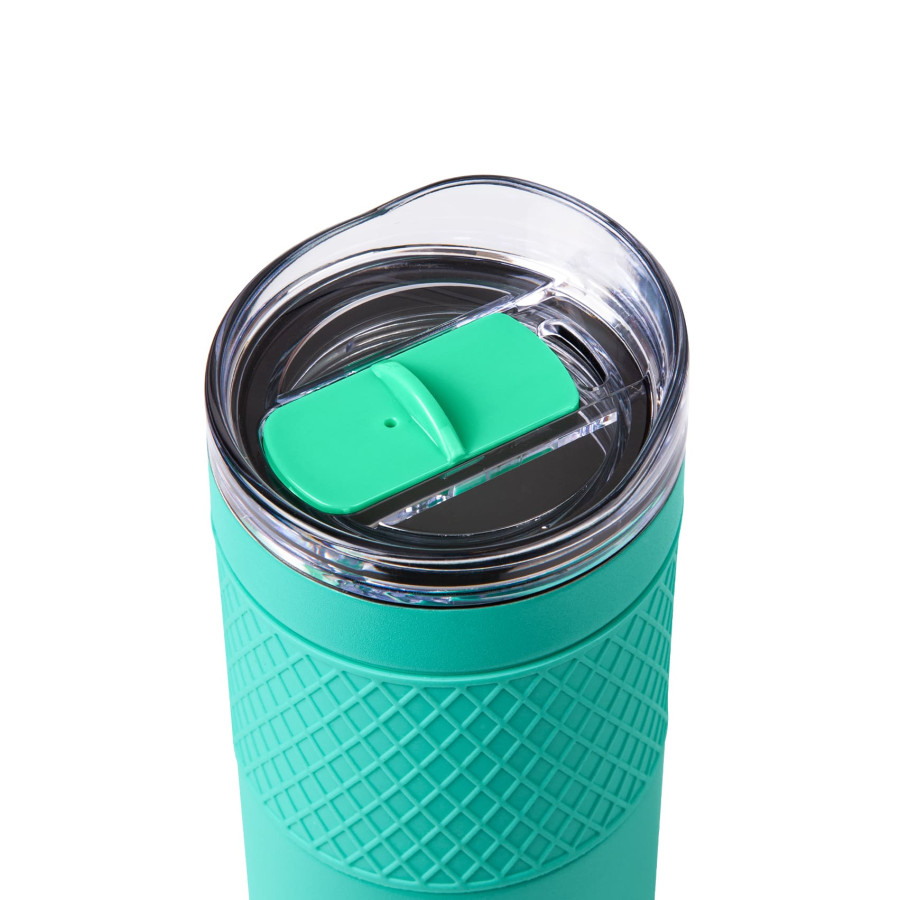 Термокружка з подвійною стінкою з нержавіючої сталі, з пластиковою кришкою та ергономічною силіконовою накладкою