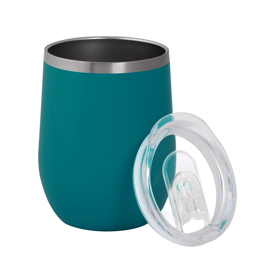 Металева термочашка з подвійними стінками з нержавіючої сталі ( глянцеве покриття емаль) і пластиковою прозорою кришкою з зсувним клапаном. Об'єм 350 мл. Індивідуальна картонна подарункова коробка. Розмір індивідуальної коробки: 12,5 х 9,7 х 9,7 см. Кришку можна мити в посудомийній машині. Корпус мити тільки вручну, щоб не пошкодити кольорове покриття. Підтримує температуру протягом 6-ти годин
