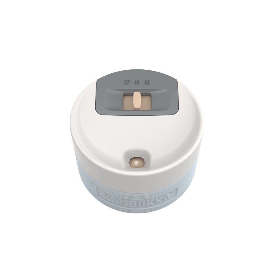 Термокружка має зручну кришку з клапаном, що регулює режим пиття й блокування отвору для рідини. Заблокований слайдер забезпечує щільне закривання.