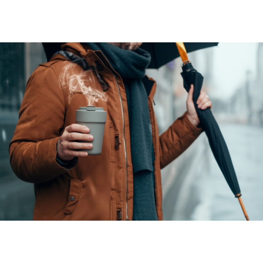 Об’єм кружки – 380 мл. Зручна кришка має кнопку, яка відкривається натисканням однією рукою.