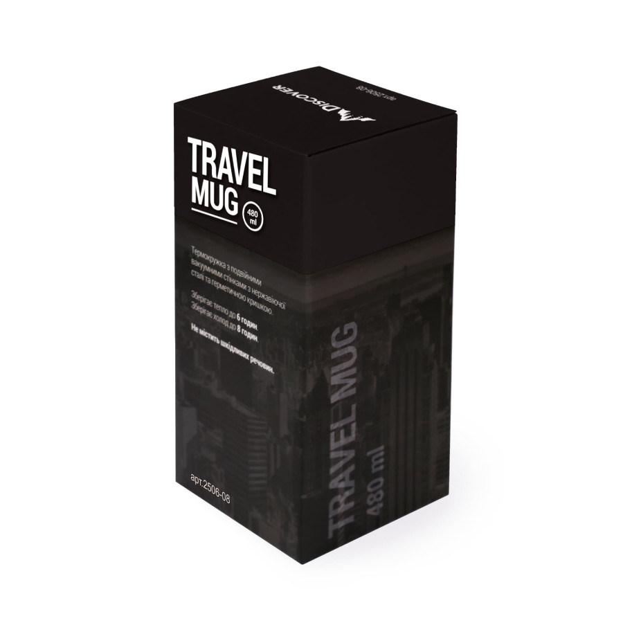 Термокружка Alaska, TM Discover (чорний) з логотипом — замовлення виготовлення від компанії Giftex. Ми пропонуємо високу якість продукції, швидке виготовлення, вигідні ціни та знижки постійним клієнтам. Працюємо з доставкою в будь-яке місто України.