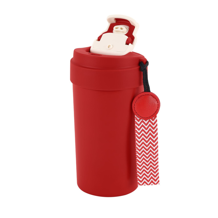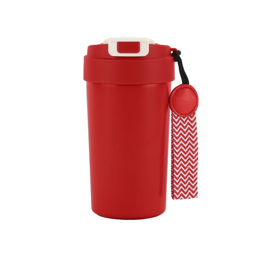 Термокружка з подвійною стінкою з нержавіючої сталі та вакуумною кришкою з кнопкою блокування.