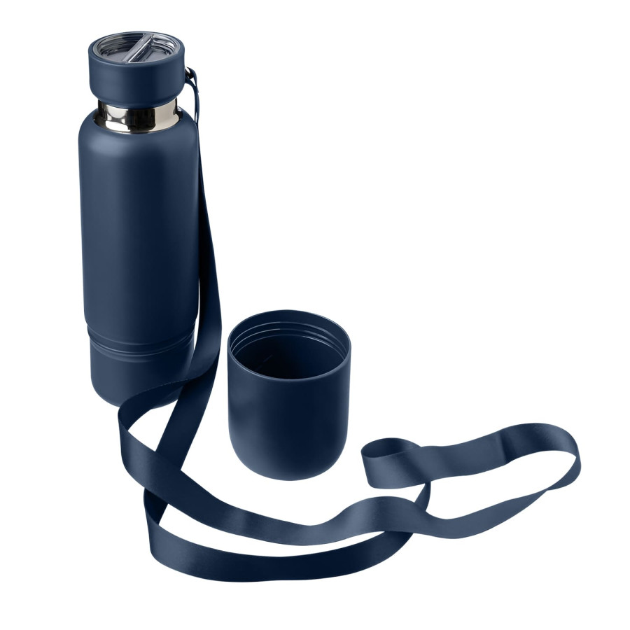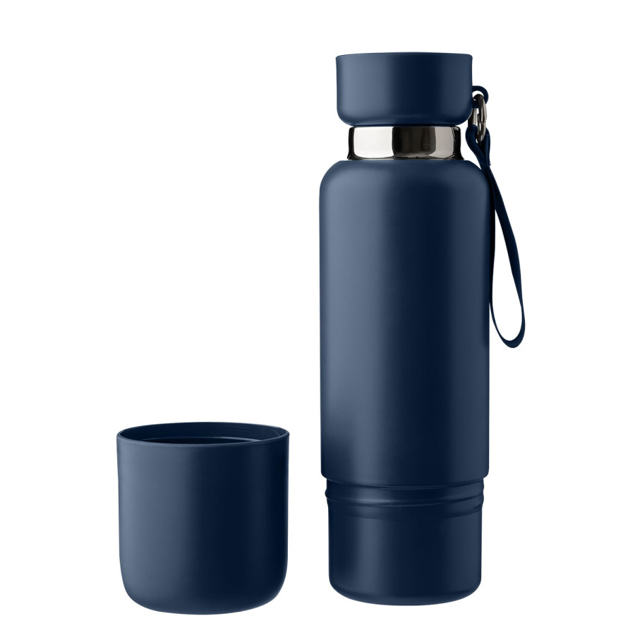 Термопляшка зі з’ємною чашкою, з подвійною стінкою з нержавіючої сталі.