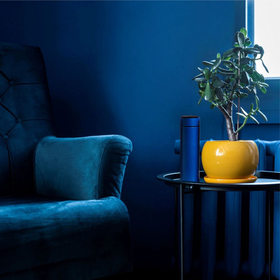 Як замовити Термос 500 мл сталевий Line Art Cusco з індикатором температури, вакуумний (синій) з логотипом від компанії Giftex: