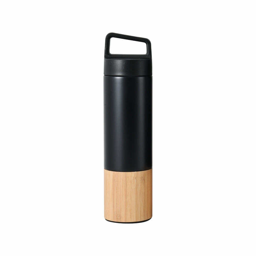 Як замовити Термос 550 мл сталевий Line Art Macao, вакуумний (чорний/бамбуковий) з логотипом від компанії Giftex: