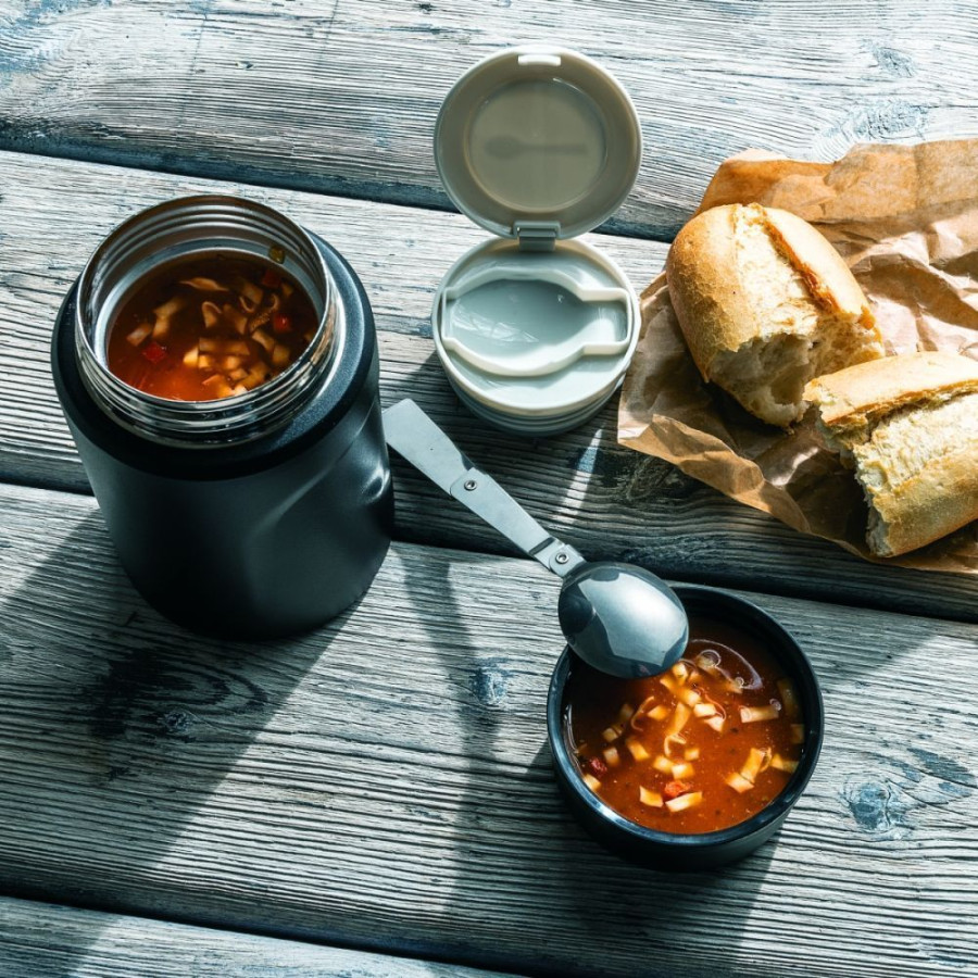 Цей харчовий термос Cibus від Schwarzwolf об'ємом 550 мл дозволяє брати улюблений суп або кашу з собою в поїздку на природу або навіть на роботу і зберігати їх гарячими або холодними довго. Для Вашої зручності термос доповнений складною ложкою в ковпачку. Він простий в обслуговуванні і має практичний дизайн. Запакований в подарункову коробку Schwarzwolf.