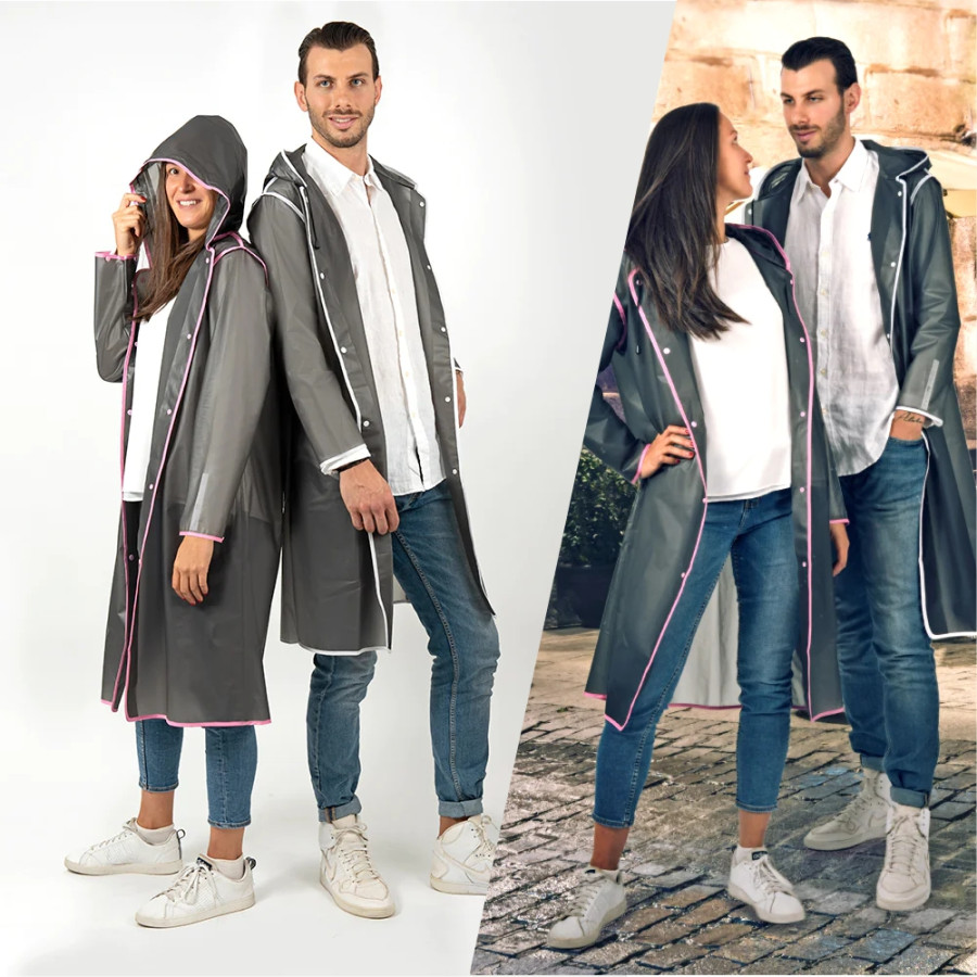 В згорнутому вигляді плащ має компактні габарити. Він продається в маленькому водонепроникному чохлі, який можна носити з собою в сумці. Це прекрасна альтернатива парасолі.