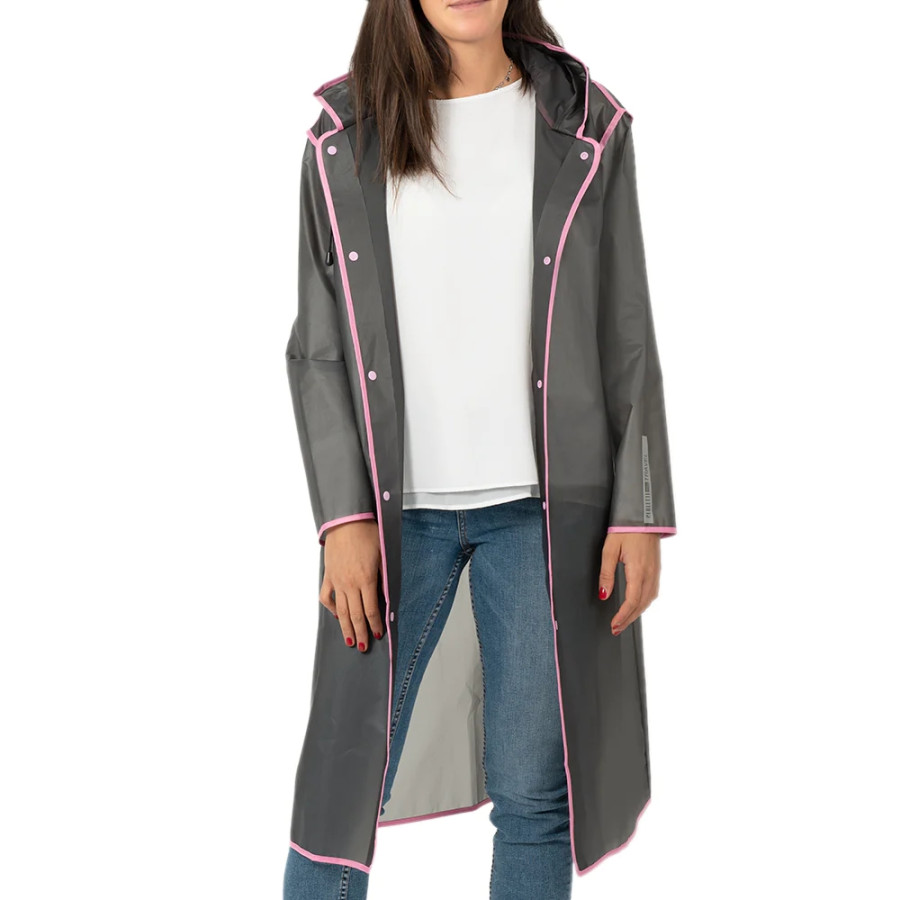 Тренч/дощовик Perletti City напівпрозорий з окантовкою та чохлом (сірий/рожевий)