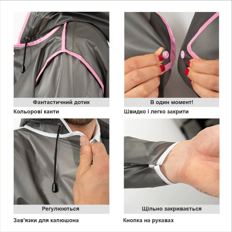Замовити Тренч/дощовик Perletti City напівпрозорий з окантовкою та чохлом (сірий/рожевий)