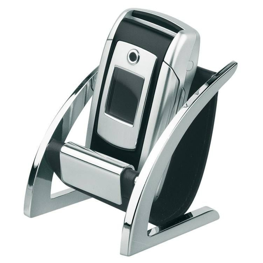 Підставка під мобільний телефон, матеріал блискучий метал і шкіра.