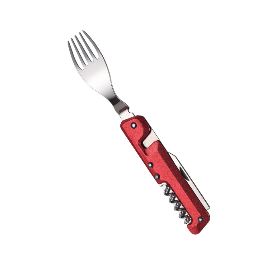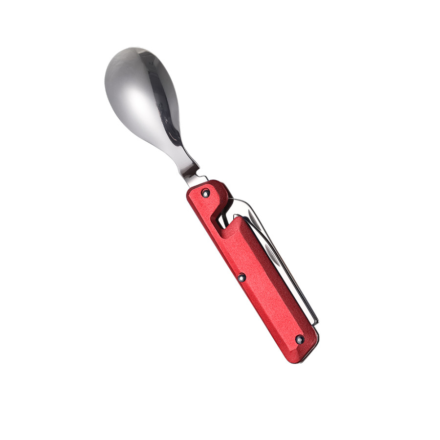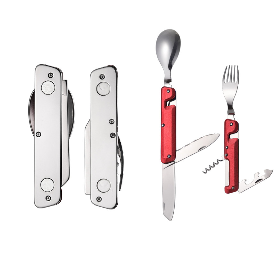 Легкий і зручний набір, виготовлений з комбінації нержавіючої сталі та алюмінію. Він ідеально підходить для кемпінгу та походів, його можна швидко і легко розділити на дві частини, щоб отримати окремі виделку та ніж з ложкою. Частини З’єднуються двома магнітними кліпсами.