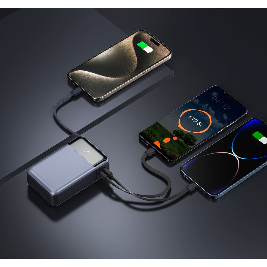 Універсальний зарядний пристрій. Ємність: 20000mAh/74Wh. Полімерний акумулятор високої якості, широка сумісність. Корпус пристрою вогнетривкий алюміній. LCD дисплей порти з функцією подвійного заряду.
