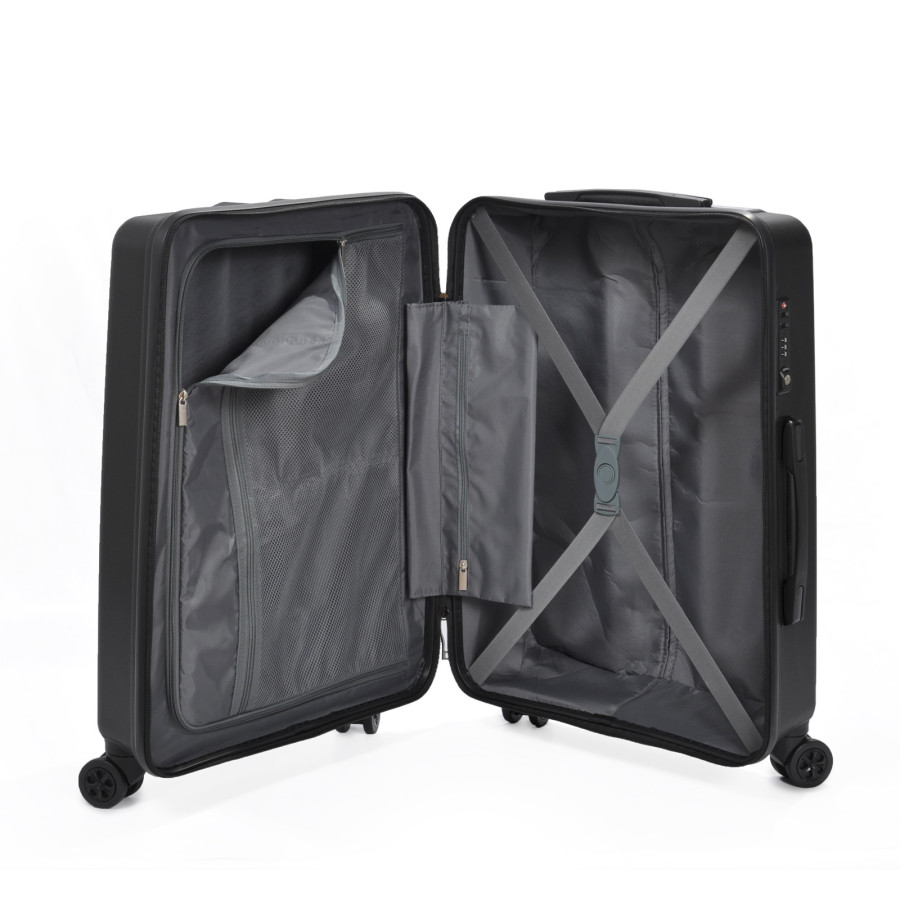 Надлегка та міцна валіза на 8-ми (4х2) колесах TM Columbus. Оснащена кодовим замком системи TSA, телескопічною алюмінієвою ручкою з фіксаторами. Всередині обшита тканиною, має 2 відділення, що розділяються діафрагмою та кишеню на блискавці для дрібних речей; еластичні паски для фіксації речей.