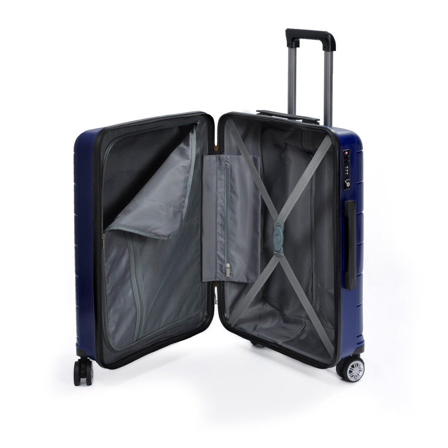 Надлегка та міцна валіза на 8-ми (4х2) колесах TM Columbus. Оснащена кодовим замком системи TSA, телескопічною алюмінієвою ручкою з фіксаторами. Всередині обшита тканиною, має 2 відділення, що розділяються діафрагмою та кишеню на блискавці для дрібних речей; еластичні паски для фіксації речей.