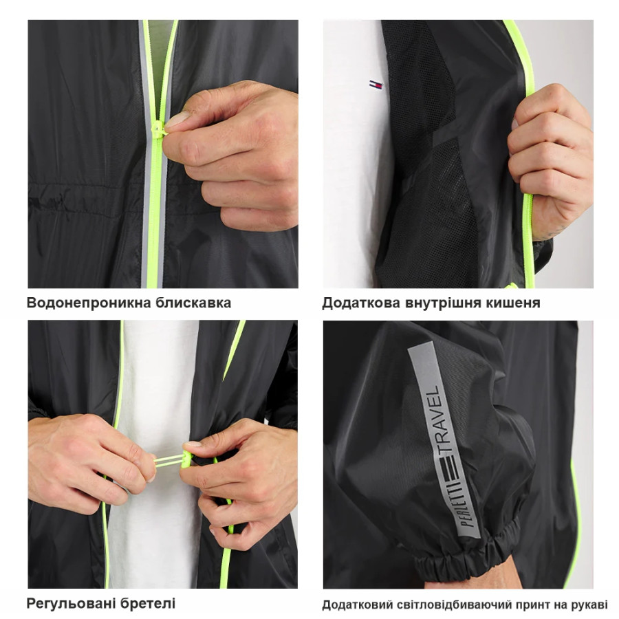 Замовити Вітровка чоловіча Perletti Windbreaker зі світловідбиваючими еламентами та чохлом (лайм/чорний)