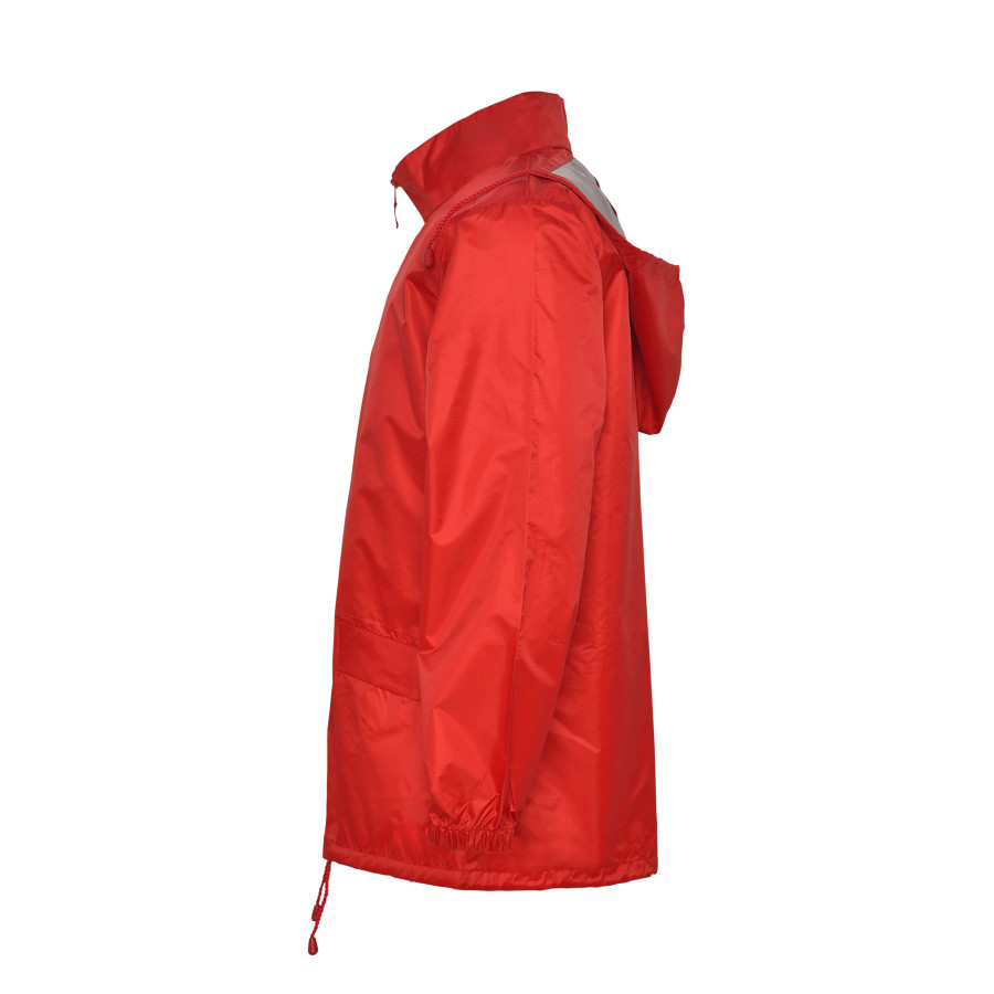 Водонепроникний плащ з високою горловина і складним капюшон. Міцний матеріал з полімерних волокон із захисним просоченням, який не вбирає вологу. Має регулювальний шнурок. Передня блискавка з відповідним знімачем. Дві бічні кишені з клапанами. Еластичні манжети. Еластичний ремінь всередині кишені для складання та зберігання. Матеріал: 100% водонепроникний поліестер, сріблясте покриття, 70 г/кв.м.