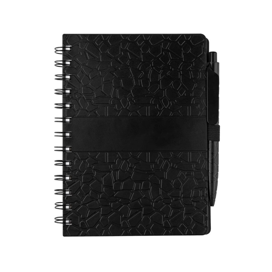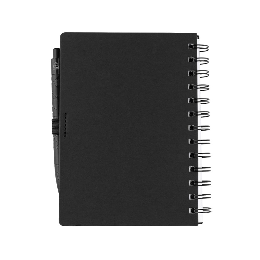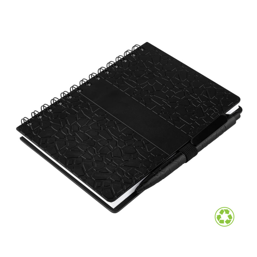 Записник B6 на пружині з ручкою, обкладинка та шарикова ручка виготовлена з переробленого пластику (Recycled ABS), внутрішній блок на 70 аркушів виготовлений із камяного паперу.