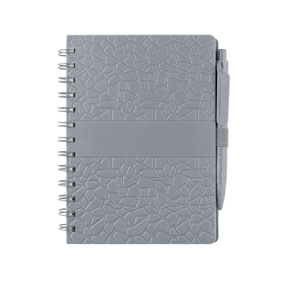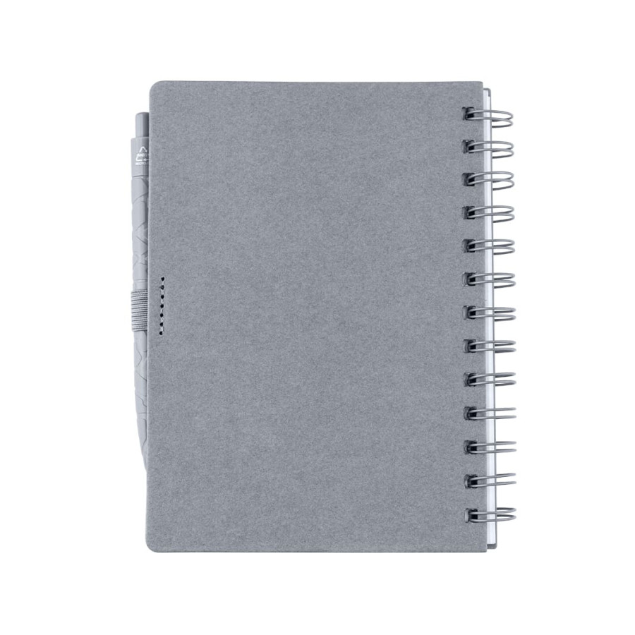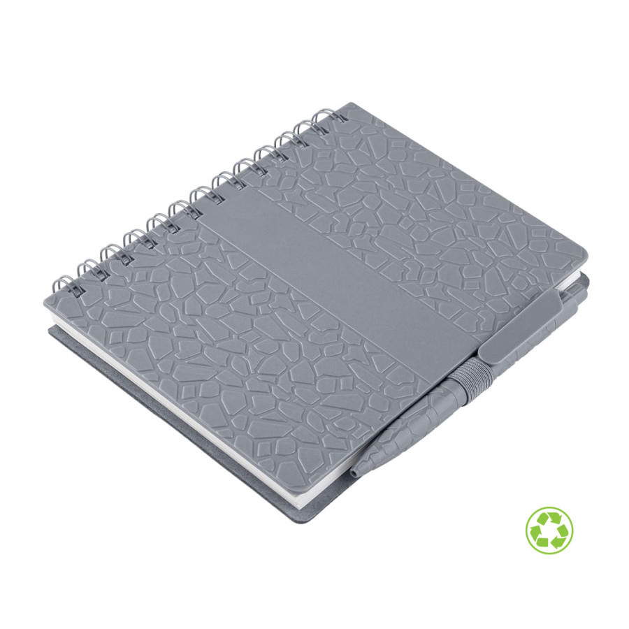 Записник B6 на пружині з ручкою, обкладинка та шарикова ручка виготовлена з переробленого пластику (Recycled ABS), внутрішній блок на 70 аркушів виготовлений із камяного паперу.
